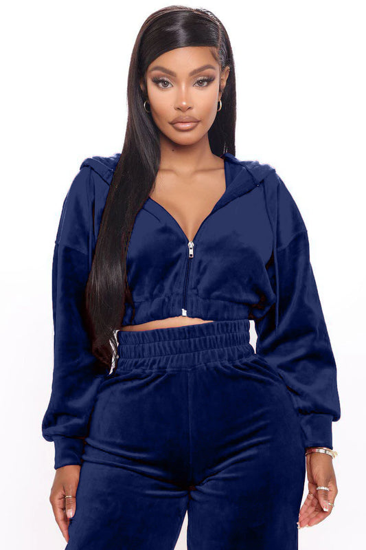 Solid Velvet Two Piece Sets Women Hoodie Crop Jacket 2 Piece Joggers Pants Outfits Velour Jogging Suits Trousers Juicy Tracksuit