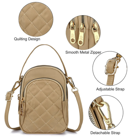 Quilted Cell Phone Purse, Multi-Pockets Crossbody Phone Pouch Bag with Adjustable Strap and Headphone Hole for Women